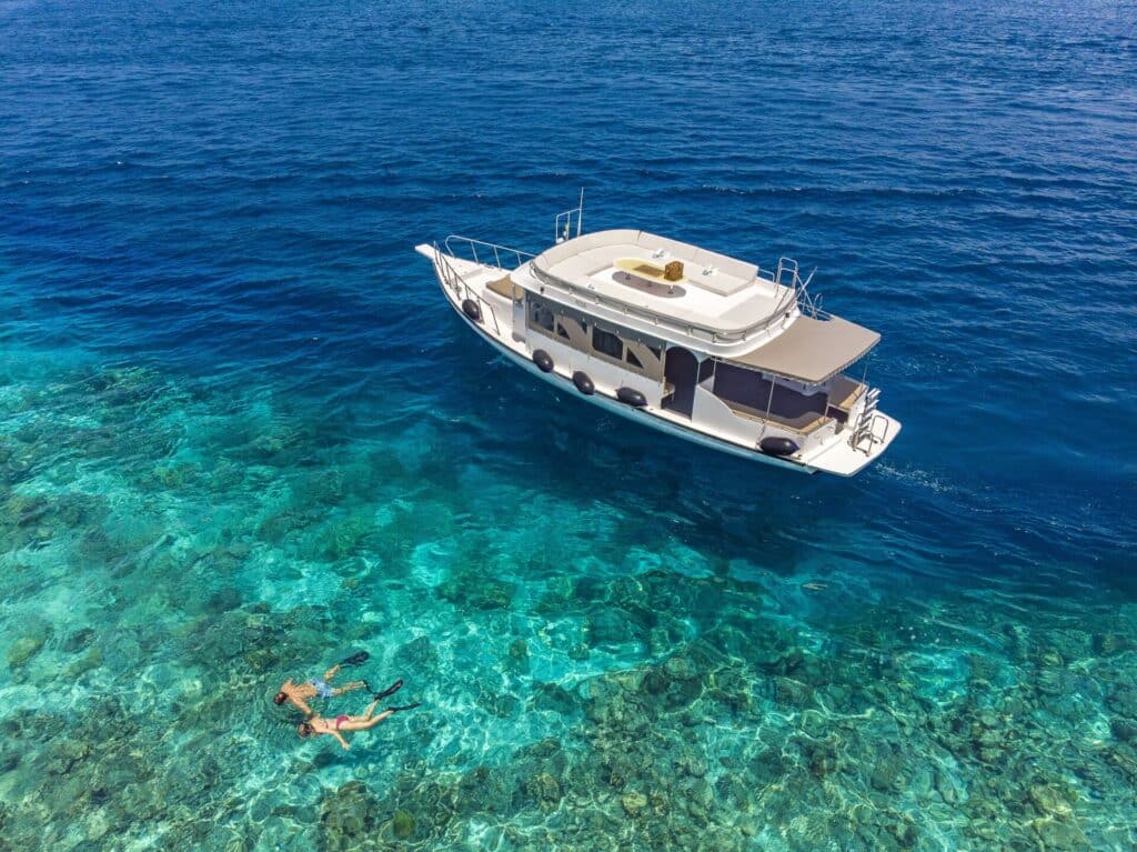 In fact, a pod of dolphins passes by the island several times a day, and I was lucky enough to see them swimming close to the shore of ‘Dream Island’, a gorgeous sandbank guests can visit for a private swim or romantic proposal.